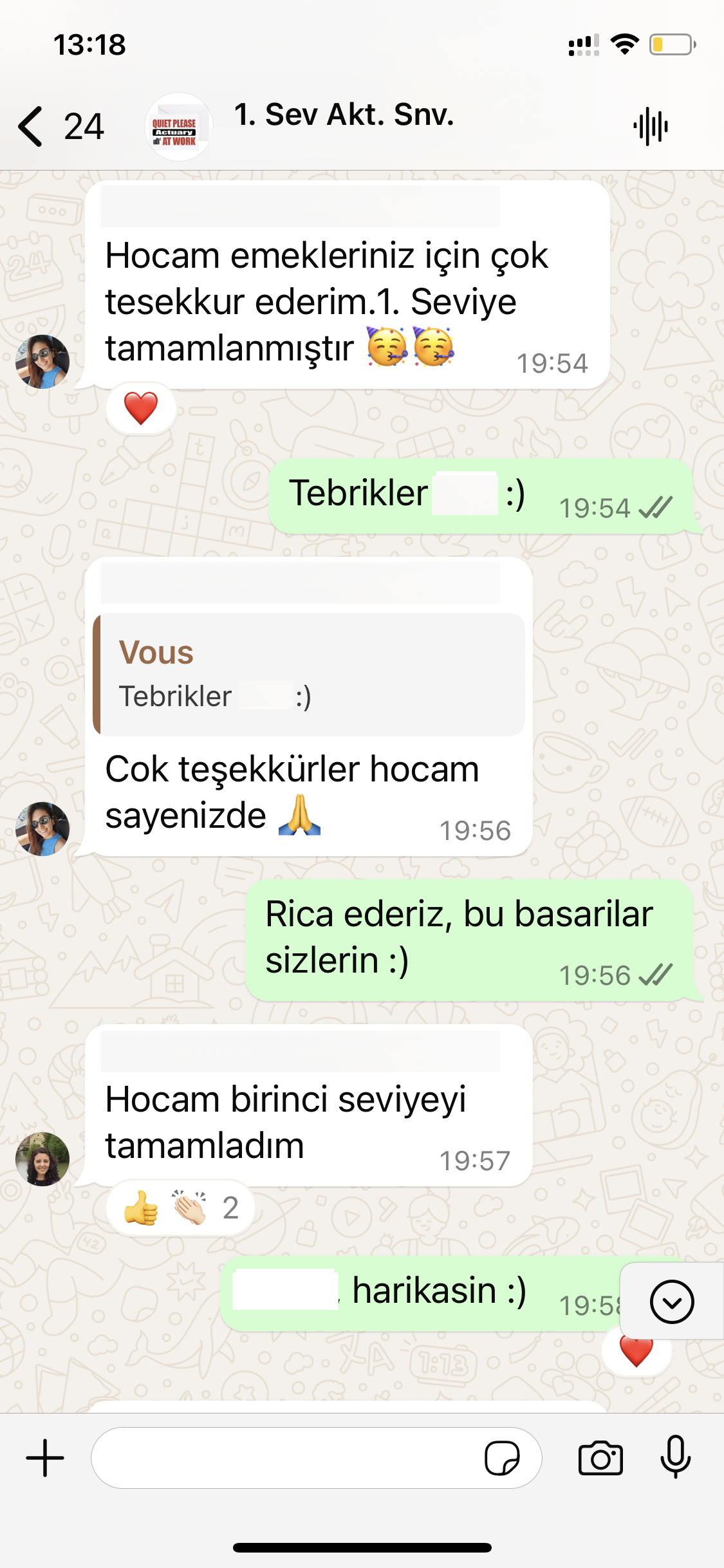 2024 Mayıs sınav sonuçlarının açıklandığı dakikalarda I. Seviye Whatsapp grubumuzdan yazışmalar...
