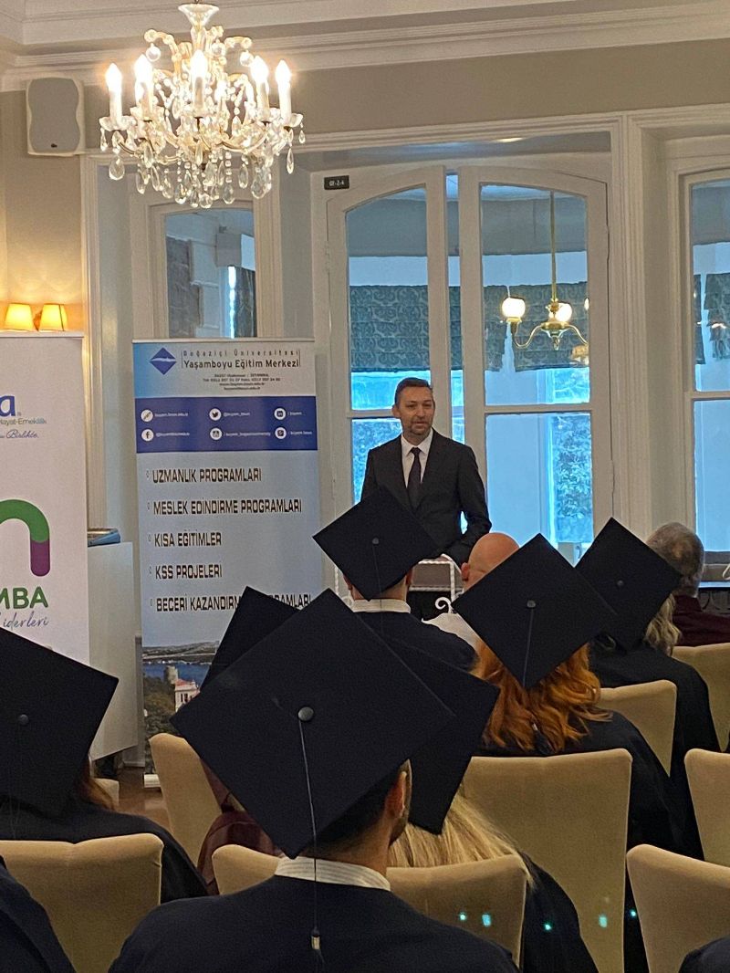 Fotoğraf: II. MiniMBA Programı Mezuniyeti. QNB Sigorta Gn. Mdr. Dr. Pınar Kuriş, BÜYEM Müdürü Dr. Tamer Atabarut,